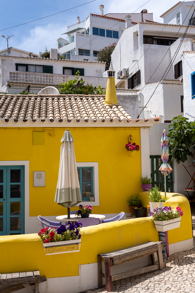 Le petit port et village de Burgau avec sa plage et ses jolies maisons.