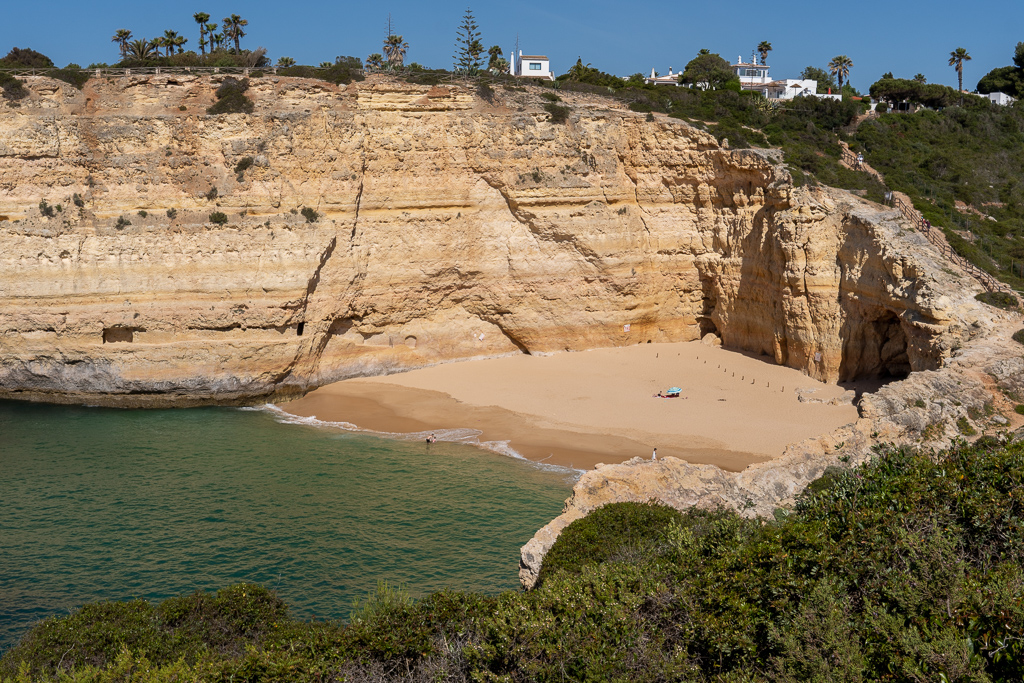 La splendide petite plage de Carvalho dont l'accès se fait par un tunnel sous la falaise.