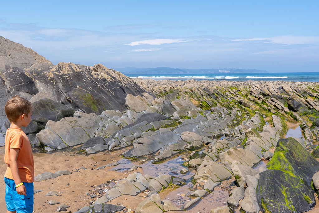 Sur cinquante kilomètres le long de cette côte, il existe six plages sur lesquelles on peut trouver des traces et empreintes de dinosaures. Nous avons tenté notre chance sur deux de ces sites et en faisant marcher notre imagination, on voit plein de choses 😀.
