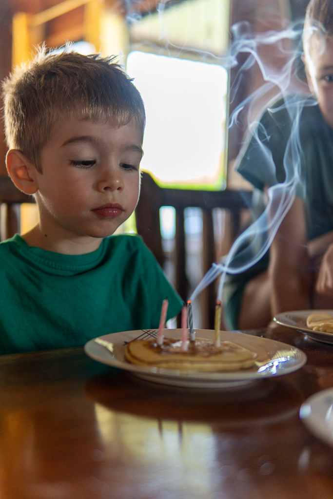 C'est aussi lors de ce séjour que nous avons fêté l'anniversaire de Robin. Soufflage de bougies sur pancakes, resto et piscine sous la pluie. Un beau programme pour fêter les 4 ans du petit Zak.