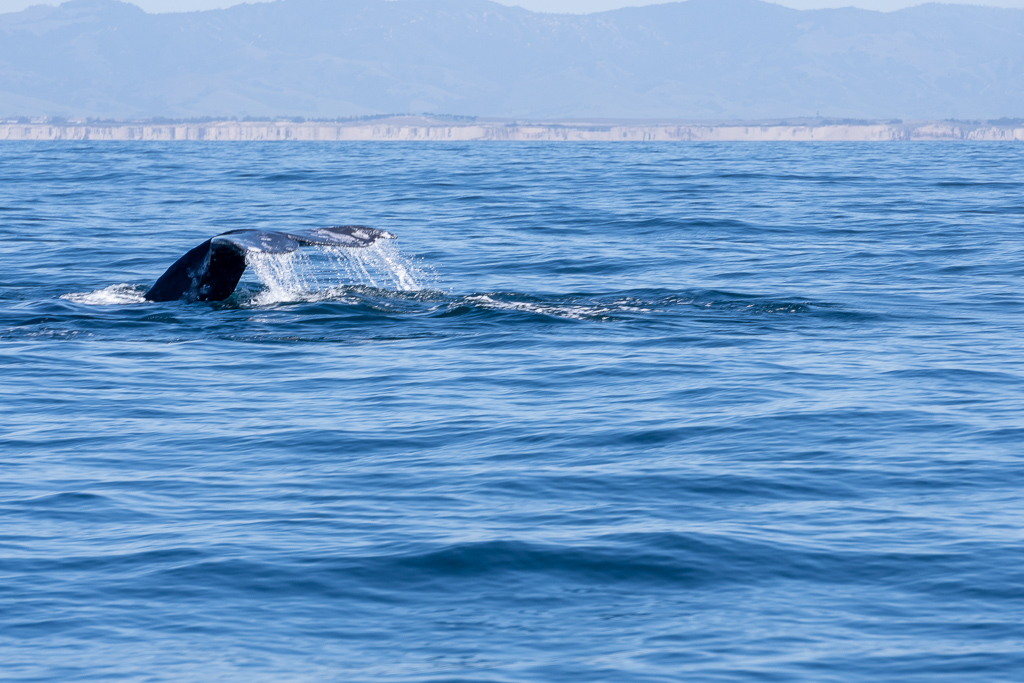Il y avait un groupe de 8 à 10 des baleines grises. Elles passent l'hiver dans les eaux chaudes près du Mexique. Puis elles remontent au printemps le long des côtes de l'Amérique pour passer le printemps et l'été dans les eaux près de l'Alaska.
