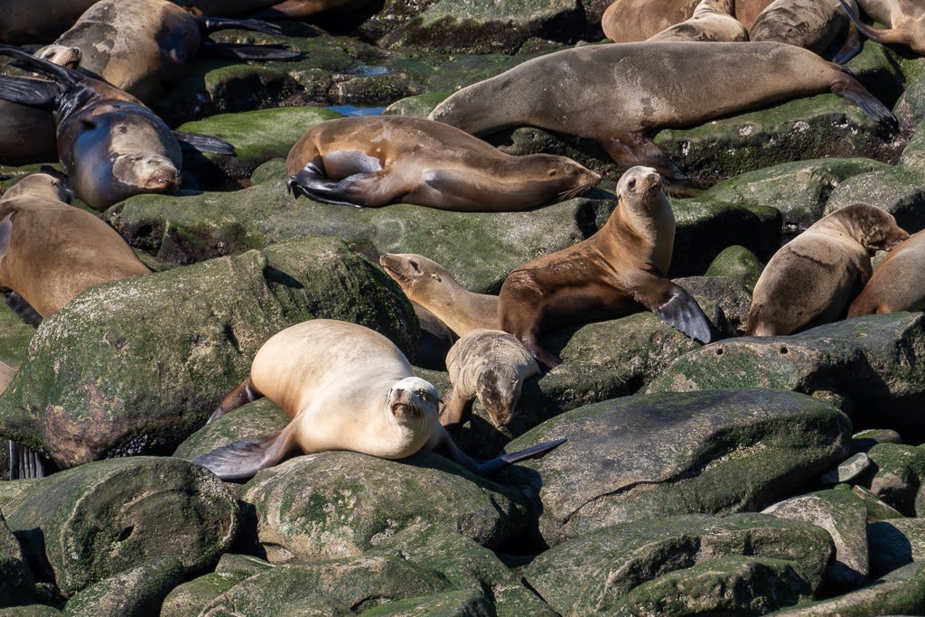 A plusieurs endroits, j'ai vu des phoques et des lions de mer qui se reposaient sur la plage.