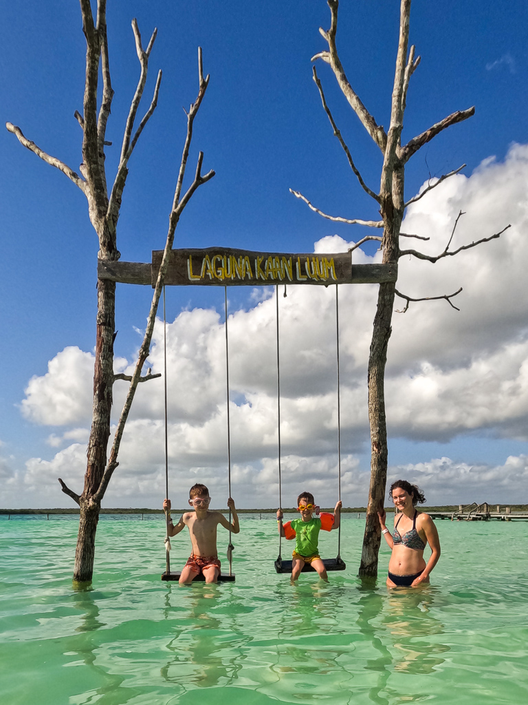 Malheureusement, le premier cénote que nous choisissons de visiter est encore fermé à 9h du matin. Grâce aux conseils d'un couple de québécois rencontré devant le portail fermé, nous décidons d'aller à la Laguna Kaan Luum à 5 minutes de là. C'est une lagune à l'eau turquoise et peu profonde autour d'un lac central plus profond.