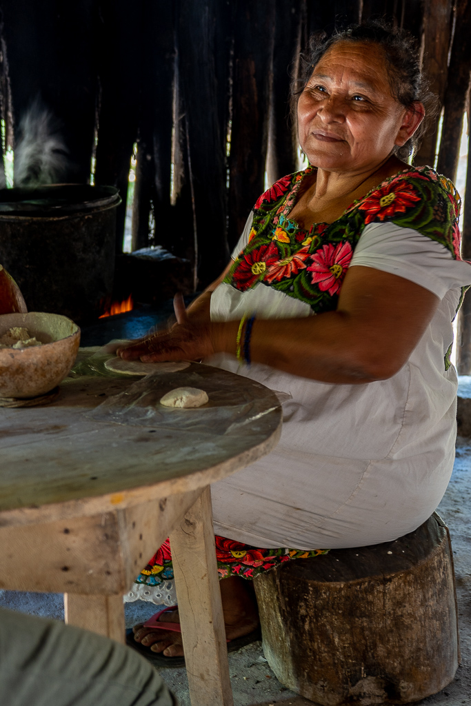 On s'essaie d'abord à la confection de tortillas de maïs avec la grand-mère.
