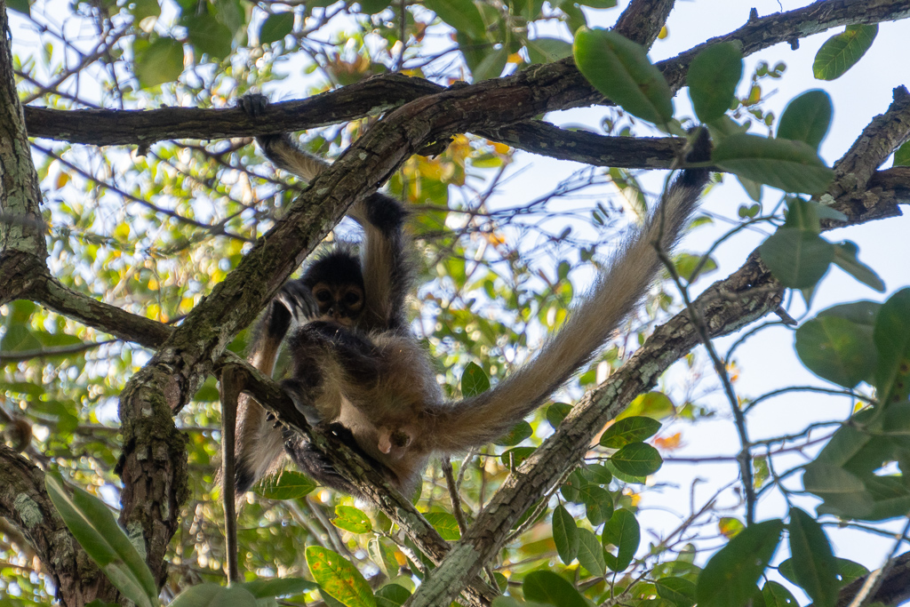 Puis nous partons à la découverte de Punta Laguna : tyrolienne, canoë puis marche dans la forêt pour observer des dizaines de singes araignées ! (Nous n'avions pas vu cette espèce au Costa Rica).
