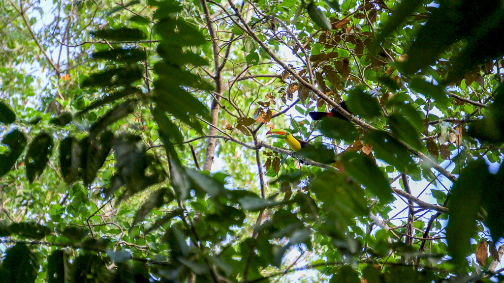 Au fils des jours et de nos balades, nous observons également de plus en plus d'animaux mystérieux : des paresseux, des grenouilles, des singes, des geckos, beaucoup d'oiseaux (toucans, oropendola, colibris, pava crestada, pélican brun, etc.) au cris et chants plus surprenants les uns que les autres.