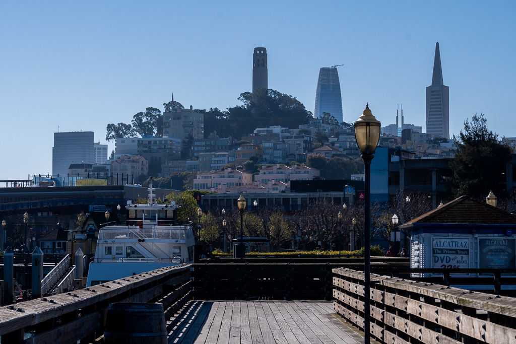 C'est reparti. On grimpe tout en haut de Telegraph Hill coiffé de Coit tower , encore un joli panorama sur Alcatraz et le Golden Gate .